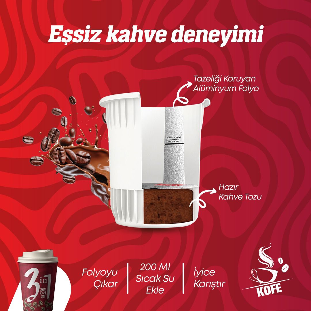Paket İçeriği: Karton bardak, Kapak, Karıştırıcı ve 3'ü 1 arada Hazır Kahve.